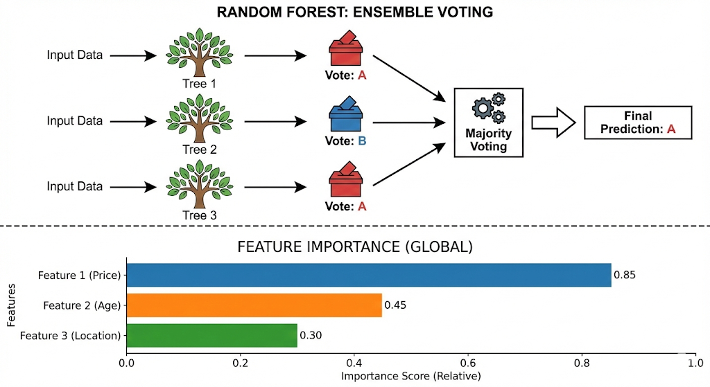 Random forests are proven for tabular data. They handle nonlinear patterns well. They also provide useful feature importance signals.